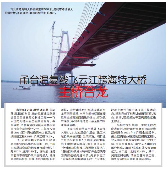 甬台温复线飞云江跨海特大桥主桥合龙