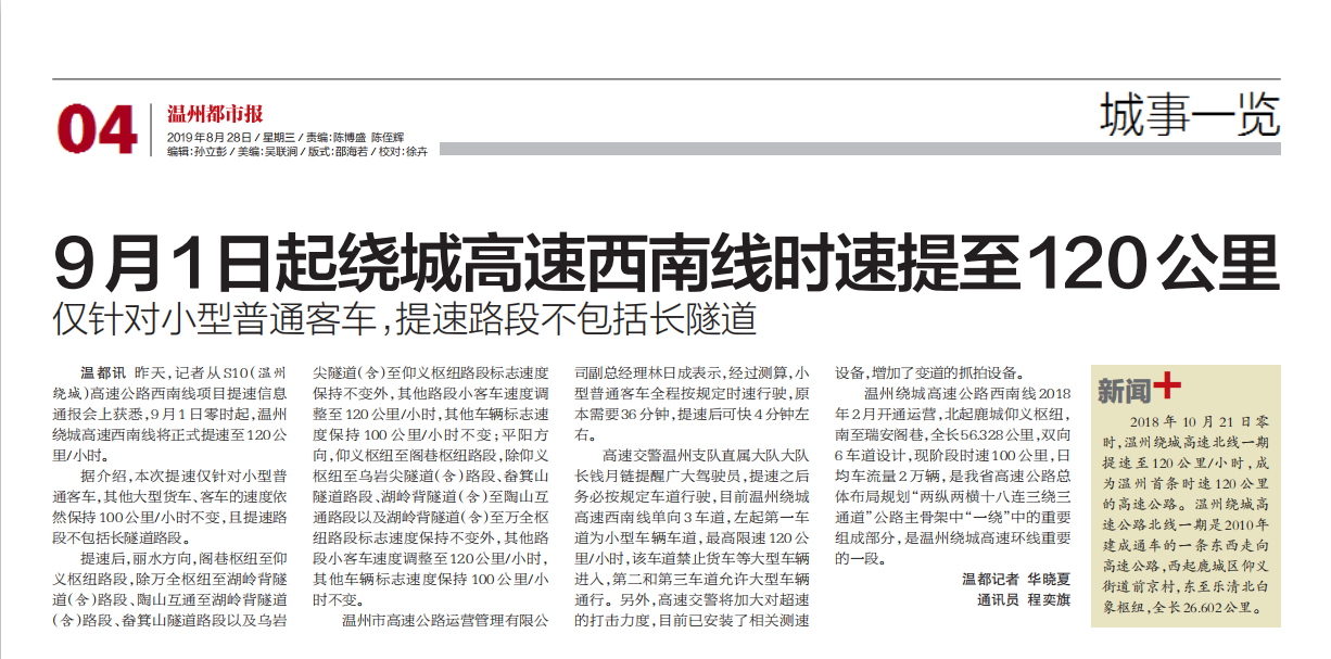 9月1日起绕城高速西南线时速提至120公里/小时