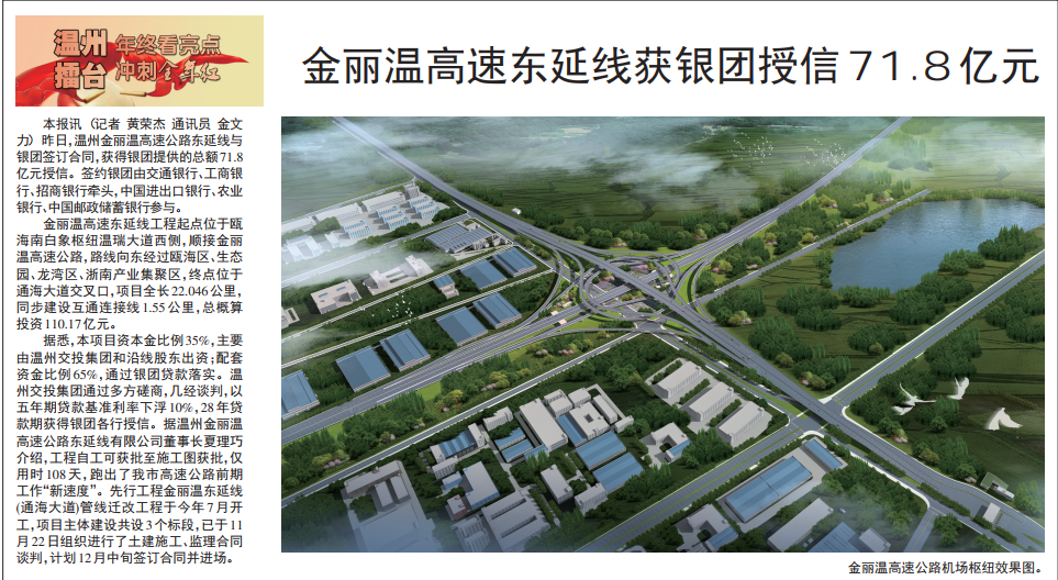 金丽温高速东延线获银团授信71.8亿元