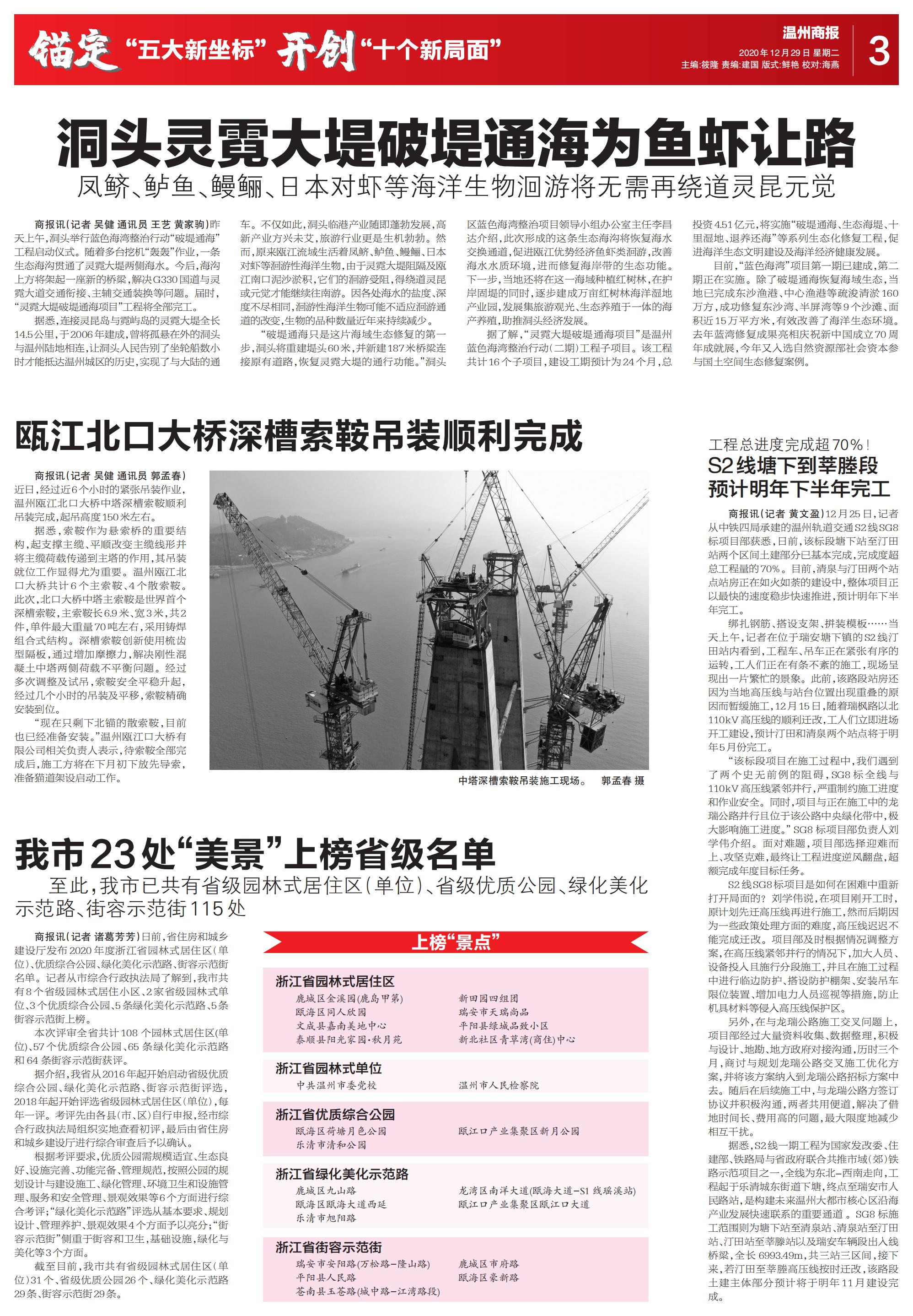 瓯江北口大桥深槽索鞍吊装顺利完成