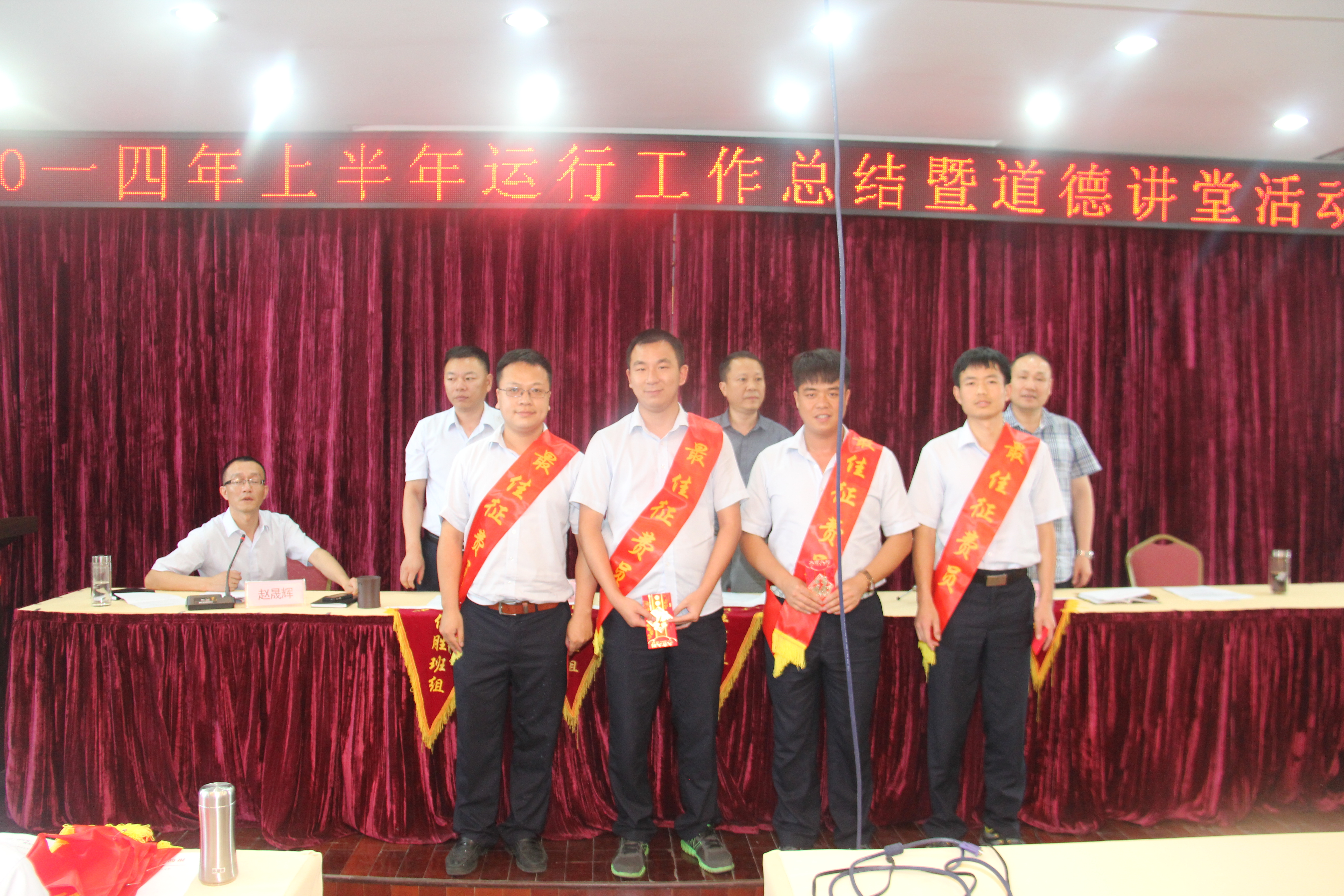 7月11日,大桥管理处在五楼会议室召开2014年上半年运行工作总结暨表彰大会,处主任戴新荣、副主任李诩、戴建敏出席会议,站点管理科、运营管理科和各中心站全体人员共200余人参加会议。会议由站点管理科科长赵晟辉主持。
