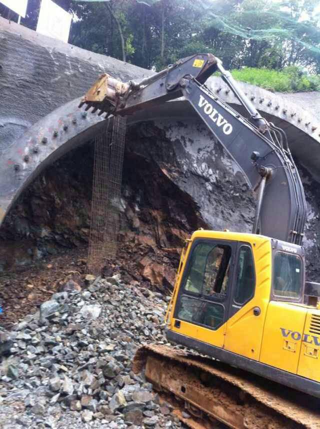 石鼓岭隧道左幅长404m,右幅长365m,最大埋深45m,隧道进洞口处于沟谷中,进口段地质条件一般。受隧道埋深、风化及水文地质影响,进洞口段围岩以Ⅴ级围岩为主。第1标段严格按照坚持“弱爆破、短进尺、强支护、早封闭、勤量测”的原则,采用超前大管棚双侧壁导坑法开挖。同时,制定安全专项方案,爆破施工前定人员、定岗位、定安全责任,做好安全警戒工作,安全措施未落实不准爆破。放炮前,所有人员必须撤离到指定地点,并有专人做好警戒工作,充分确保人员和施工安全。