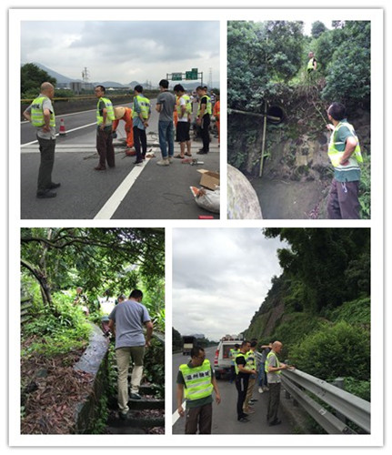 公司各部门积极响应领导号召,全力做好防台工作。一是落实防汛抗台责任制,确保24小时人员值班监管,发挥连续作战的精神;二是工程部对沿线高边坡、桥梁、隧道、边沟加强巡查,及时排除安全隐患,落实抗台人员和物资;三是设备部对机电设备进行隐患排查,尤其是高杆灯进行下降工作的落实,并确保配电房门窗关好,并于门外堆放沙袋防止雨水灌入;四是监控中心加强对路面巡查及监控中心防洪准备;五是办公室作好抗台后勤保障工作。