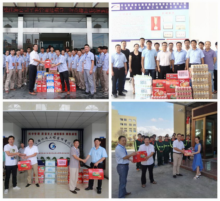 入夏以来,高温酷暑炙烤瓯越大地,面对持续高温,8月份以来,沈海公司平苍处班子成员、科室负责人及业主代表组成慰问组,兵分四路赴施工一线开展夏季高温慰问送清凉活动,并送上方便面、八宝粥、矿泉水等慰问品,向坚守在高温一线的项目部全体职工与一线工人表示真挚问候和关心。