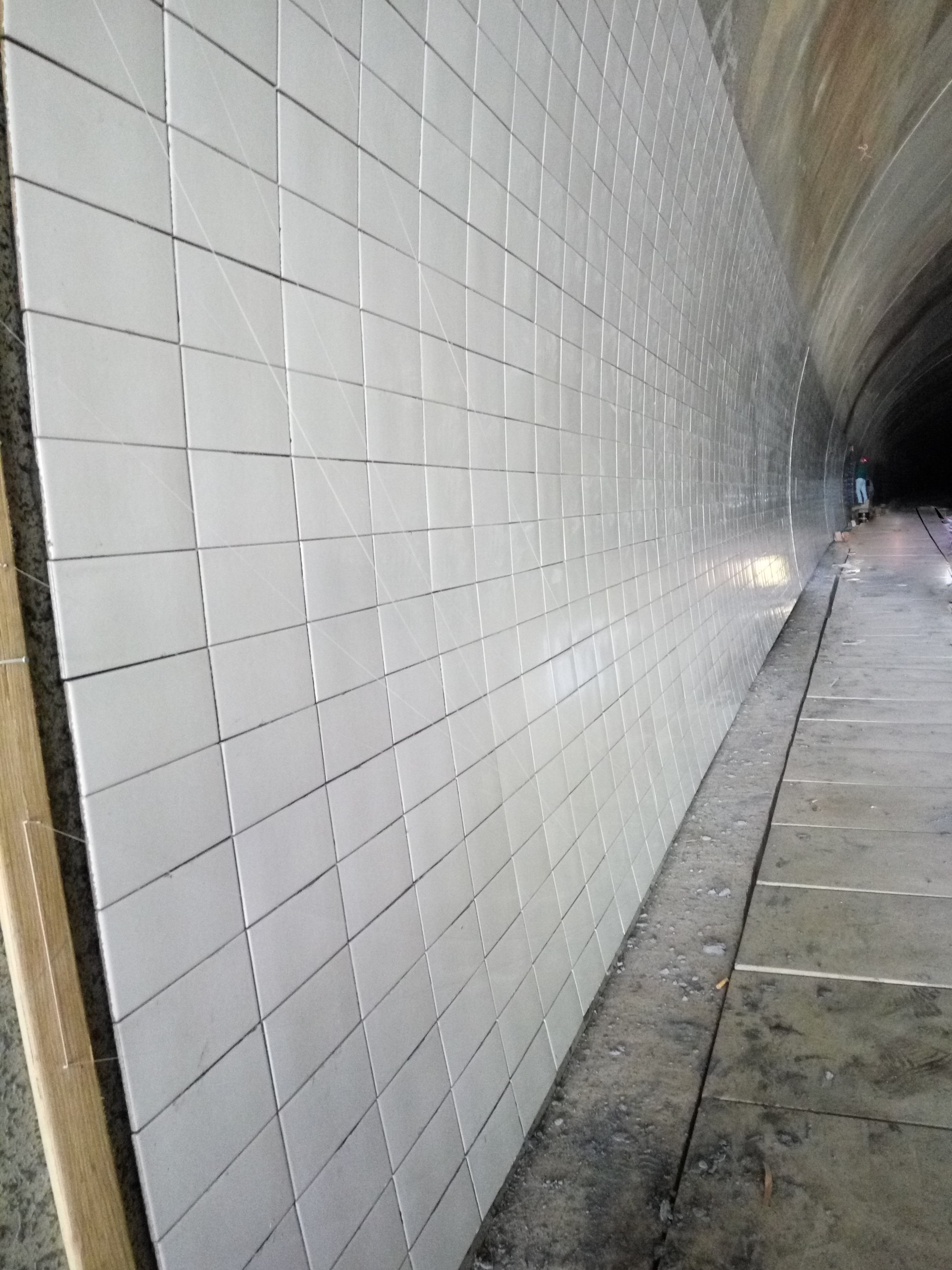 湖岭背隧道洞内装饰的开工标志着8标的隧道工程已进入扫尾阶段。