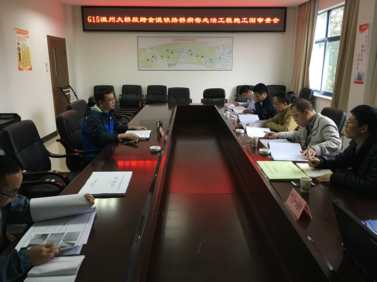 11月8日上午,绕城分公司在公司二楼会议室组织召开G15(沈海)高速公路温州大桥段跨金温铁路桥病害处治工程施工图审查会。参加会议的有中交第一公路勘察设计研究院有限公司等单位的代表和专家。