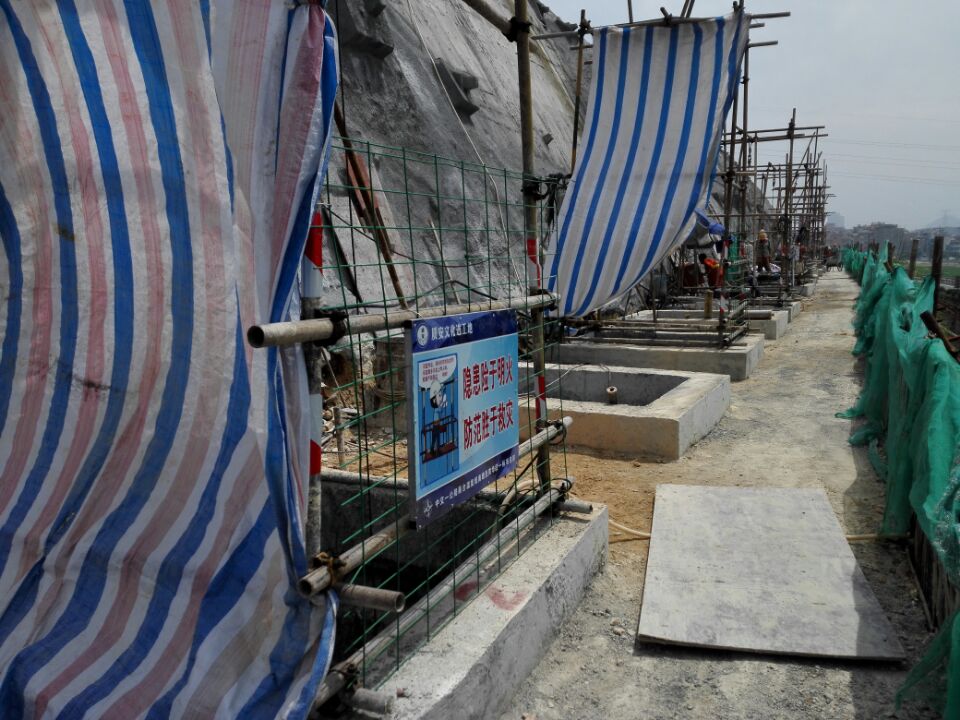 该段抗滑桩共计26根,由于岩层岩质较好,多为中风化岩层,靠近既有高速公路又不能采用爆破施工,开挖较为困难。经过甬台温复线南塘至黄华段1标项目部研究,确定了水磨钻辅以风镐人工开挖的方法,目前进展顺利,为节点目标的实现打下了良好的基础。