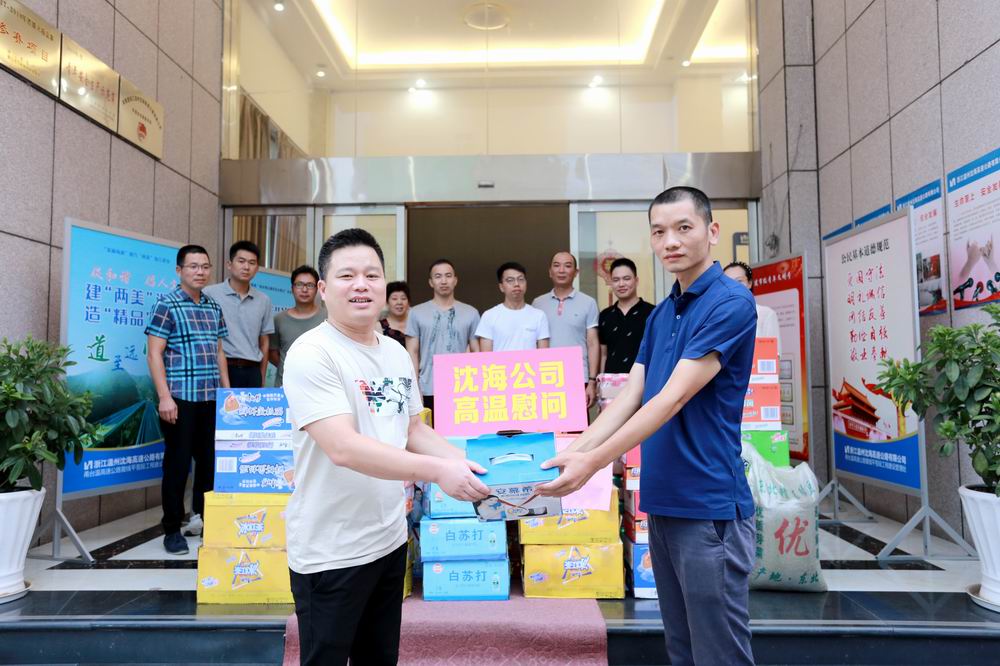 近日,沈海公司蔡邦国带队深入施工一线,慰问酷暑中坚守在岗的工作人员,并送上高温慰问品。公司李革、包道桧、姜玉龙、陈智寿等陪同慰问。