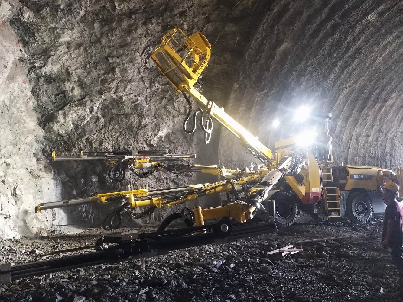 三臂凿岩机、湿喷机的投入使用,实现了“机器换人”,在隧道施工最危险的掌子面作业人员由原来每次需要9人减少到现在3人。这3名作业人员在现场主要是远程操作设备进行钻孔,与最危险的作业面保持了安全距离,作业时间也从原来每次钻孔6小时,降低至2小时。不仅降低施工风险、提高了施工效率,还节省了施工成本。