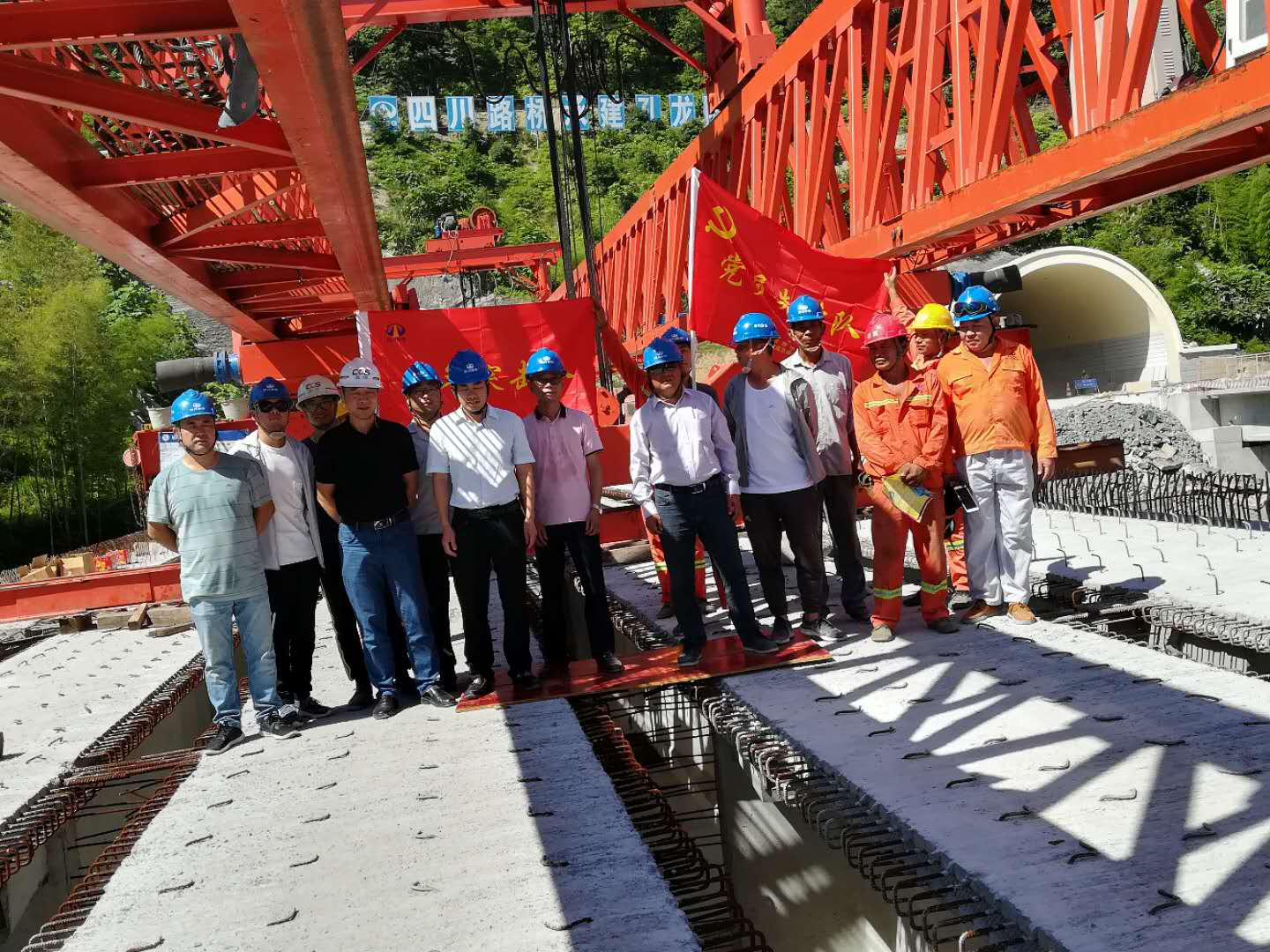 孔龙大桥是当地政府要求变更新增加的一座桥梁,由于地质复杂,图纸变更较晚,班组进场较迟,导致孔龙大桥成为该项目全线最后一个完成桩基施工任务的桥梁。通过及时增加作业班组及作业主员,提供充足的材料设备保障,5月16日顺利完成左右幅T梁架设任务。
