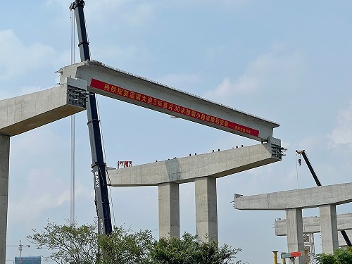 8月20日上午,温瑞大道南段快速路一期工程第3标段“首片”长30米、重约87.5吨的预制小箱梁顺利吊装完成,标志着该项目建设正式进入上部结构施工阶段。