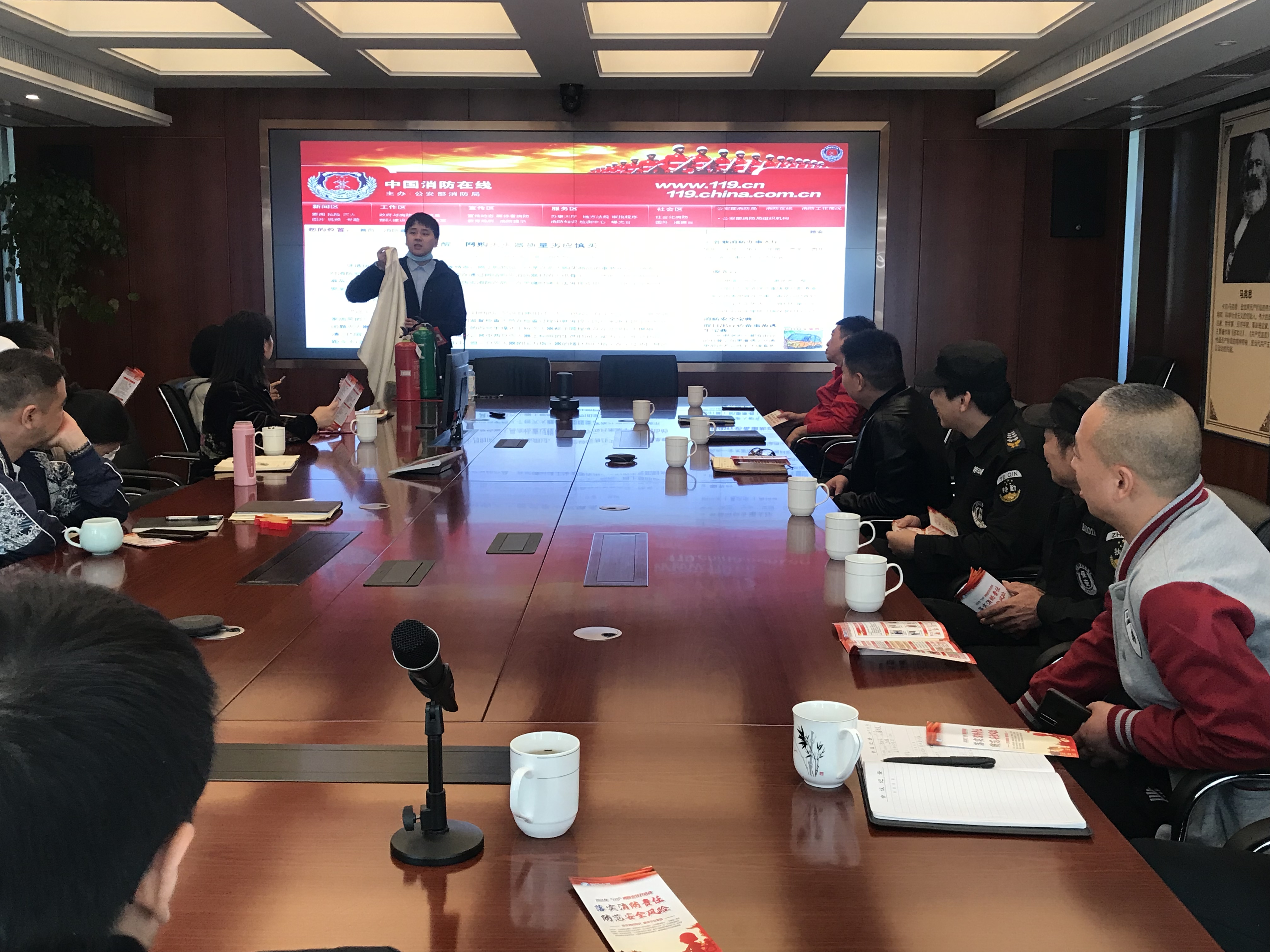 为做好“119”消防宣传月活动,为帮助广大人民群众树立消防安全意识,提高火灾自救自助的能力。11月9日上午,我站邀请居安消防潘温和教官来泽雅水库为职工讲解各种消防安全常识及灭火、防火自救的方法,通过例举各类火灾事件提高职员的自救意识,并在会后分发安全知识宣传手册。