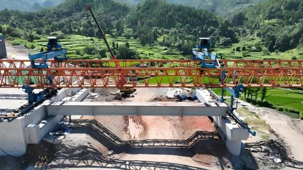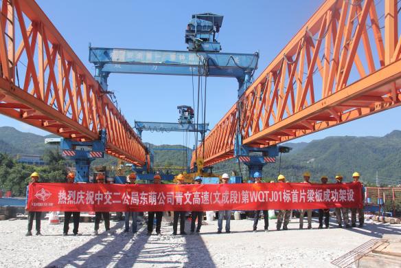 青田至文成高速公路(文成段)项目首片梁板成功架设 桥梁上部结构施工全面启动