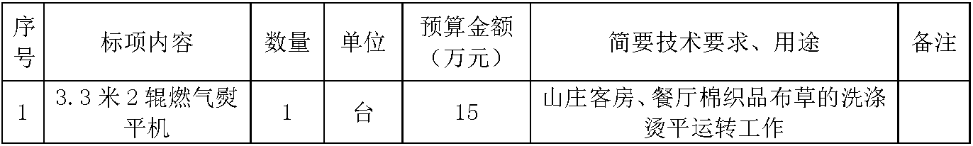 交发集团乐清市雁荡山山庄关于1台3.3米2辊燃气熨平机(自主)的采购公告