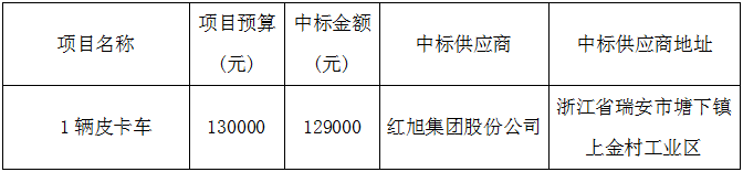 betway西汉姆联官方网站所属温州星河物业管理有限公司关于1辆皮卡车采购项目(自主)的采购结果公示