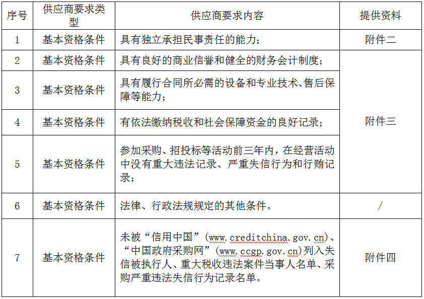 三、服务供应商资格条件及其审查方法和标准: 符合《温州市市属国有企业采购管理办法(试行)》第十五条对投标人参加温州市国有企业采购活动应当具备的基本资格条件;