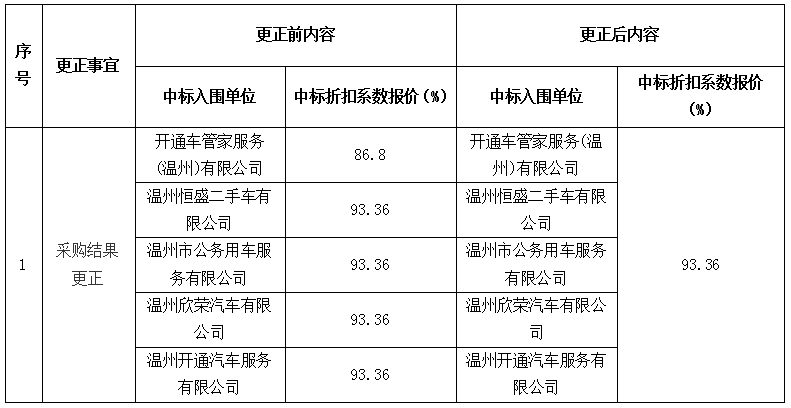 七、变更理由:采购结果公示的更正。