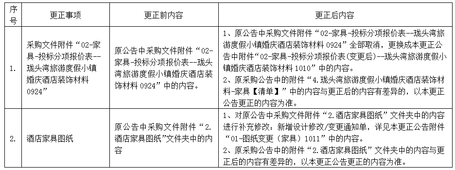 更正事项:采购文件更正