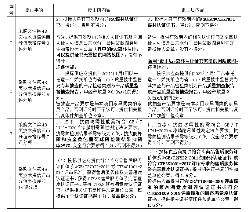 更正事项:采购文件更正