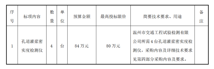 温州betway西汉姆联官方网站所属温州市交通工程试验检测有限公司关于4台孔道灌浆密实度检测仪项目(自主)的采购公告