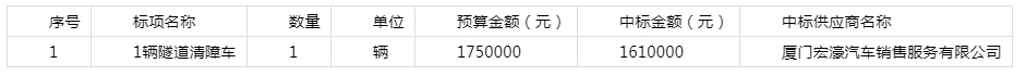 关于1辆隧道清障车(自主)的采购结果公示