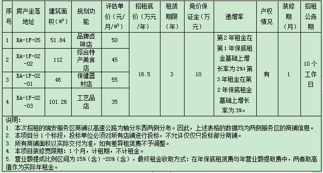 温州betway西汉姆联官方网站经营公司关于甬莞高速公路瑞安服务区2处商铺(RA-1F-05、RA-1F-02)合并三年租赁权交易公告
