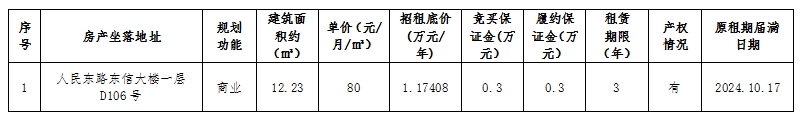 betway西汉姆联官方网站温州房地产开发股份有限公司关于温州市鹿城区人民东路东信大楼一层D106号房产租赁权交易公告