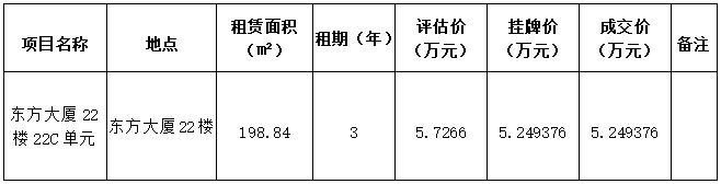 东方大厦22楼22C单元办公房三年租赁权(第二次)出租结果公示