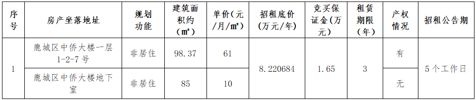 中侨大楼一层1-2-7号及地下室租赁权交易公告