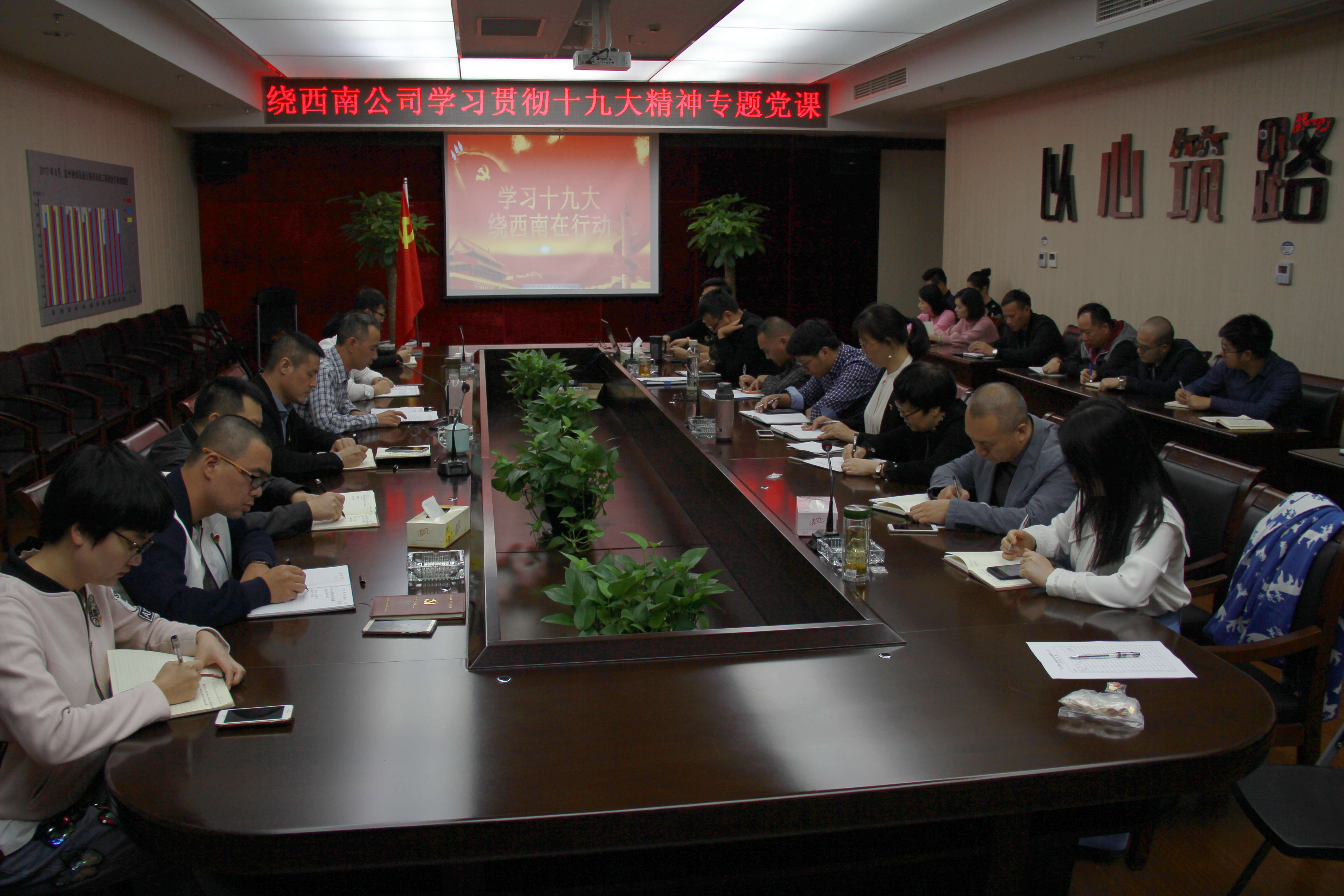 党的十九大已顺利落下帷幕。11月3日,绕西南公司党支部迅速召集全体职工,以主题党日活动为载体,掀起学习宣贯十九大精神热潮。党支部组织委员陈照亮给全体员工上了一堂振奋人心的党课。
