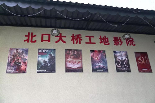 “北口大桥工地电影院”开映了