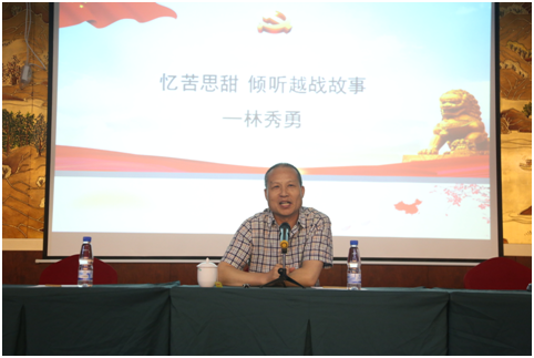 为庆祝建党97周年,七一来临前一天,瓯江北口大桥工程拓展型联合党总支邀请到曾参加中越战争的一名中国老兵——林秀勇,亲身讲述战地故事。
