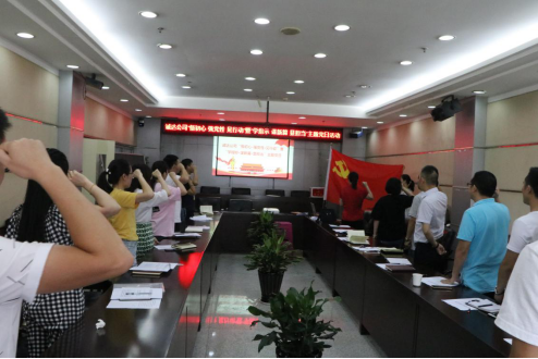 会上,公司党总支沈剑华带领全体党员面向党旗,庄严宣誓,重温入党誓词。随后,与会人员观看了“八八战略”15年 引领浙江新发展和政论纪录“八八战略”15年的视频。