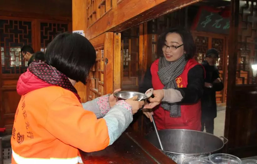 刘赛一行人首先参观了状元亭“红色驿站”,学习“党建+志愿服务”经验。随后,志愿者们在状元亭设置固定施粥点,为社区群众及周边的环卫工人免费提供腊八粥,同时志愿者们也走进大街小巷流动为有需要的人送粥,真正将温暖送到群众家门口,让大家真真切切地体验到腊八节的节日氛围。
