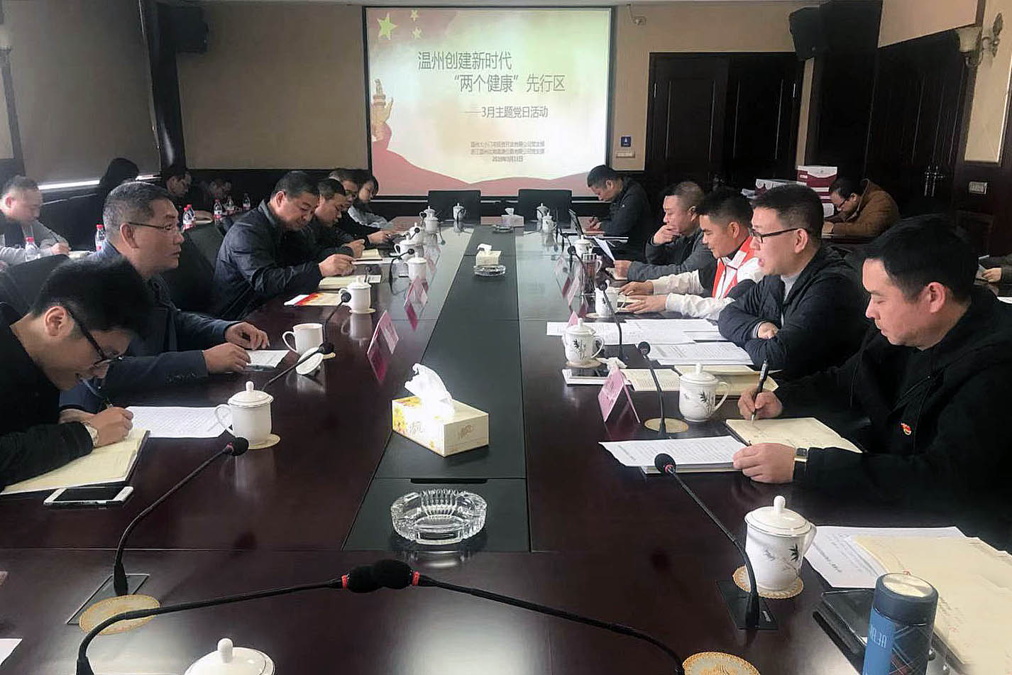 随后召开了主题党日会议。全体党员重温了入党誓词,学习了《党章》,传达了《中国中产党重大事项请示报告条例》,宣贯了《“两个健康”引领中国民营经济的未来》文件精神,并按规定缴纳了党费。会议强调,创建新时代“两个健康”先行区是推动温州民营经济高质量发展的重要抓手,是放大温州发展优势的特色载体,是引领温州未来发展的重大举措。我们都应该提高政治站位,从牢固树立“四个意识”、坚决落实“两个维护”的高度出发,充分认识创建新时代“两个健康”先行区的重大政治意义,推动市委重大决策部署贯彻落实到位。会议要求,全体党员结合各自岗位实际,深入结合创建“两个健康”先行区要求,着重思考在服务高质量发展方面存在的主要不足和短板,形成书面材料汇总上报。