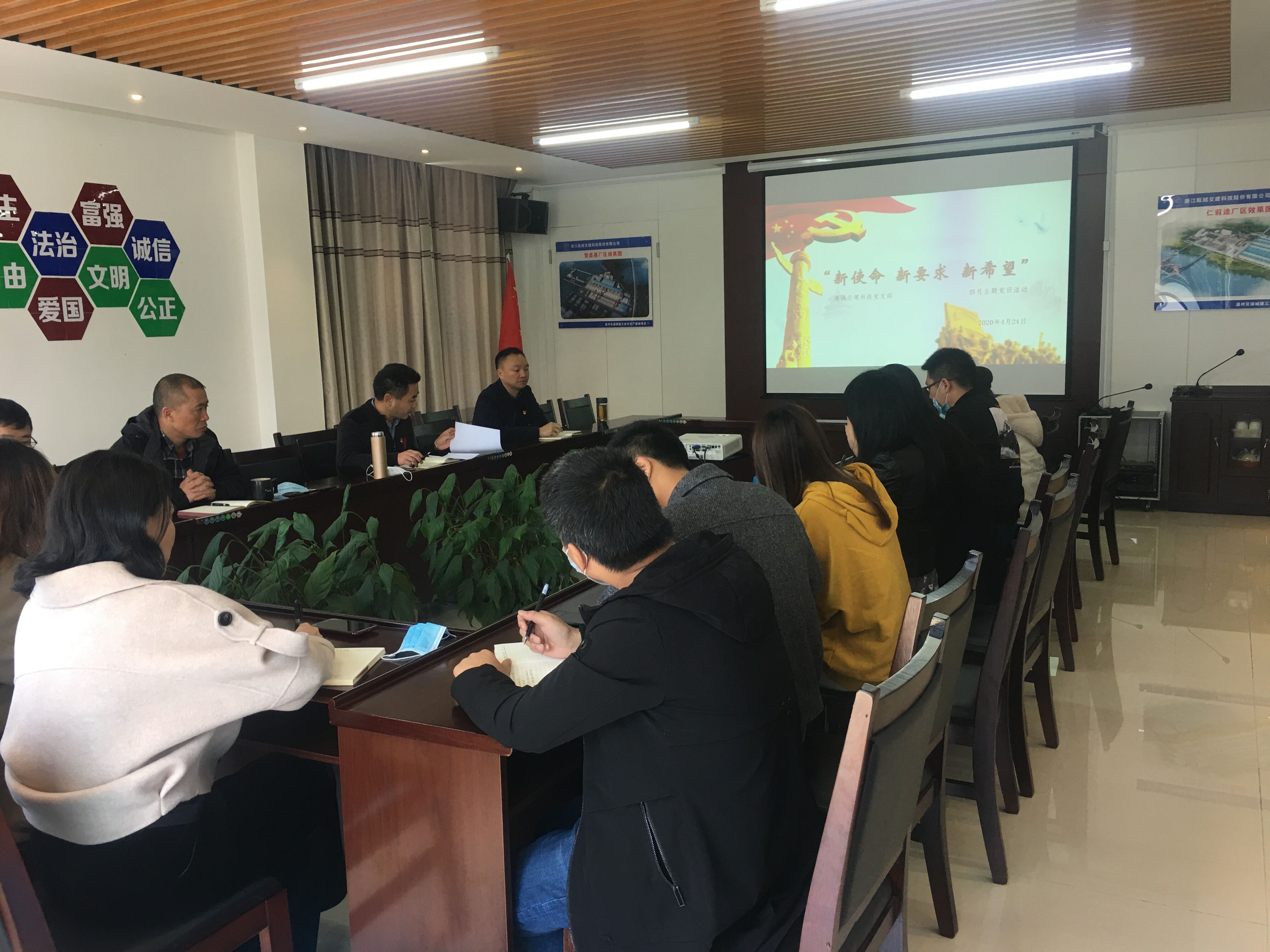 4月24日上午,浙瓯交建科技公司党支部召开“新使命、新要求、新期望”主题党日活动,活动由支部书记宋海良主持,公司全体党员、预备党员及积极分子参加会议。