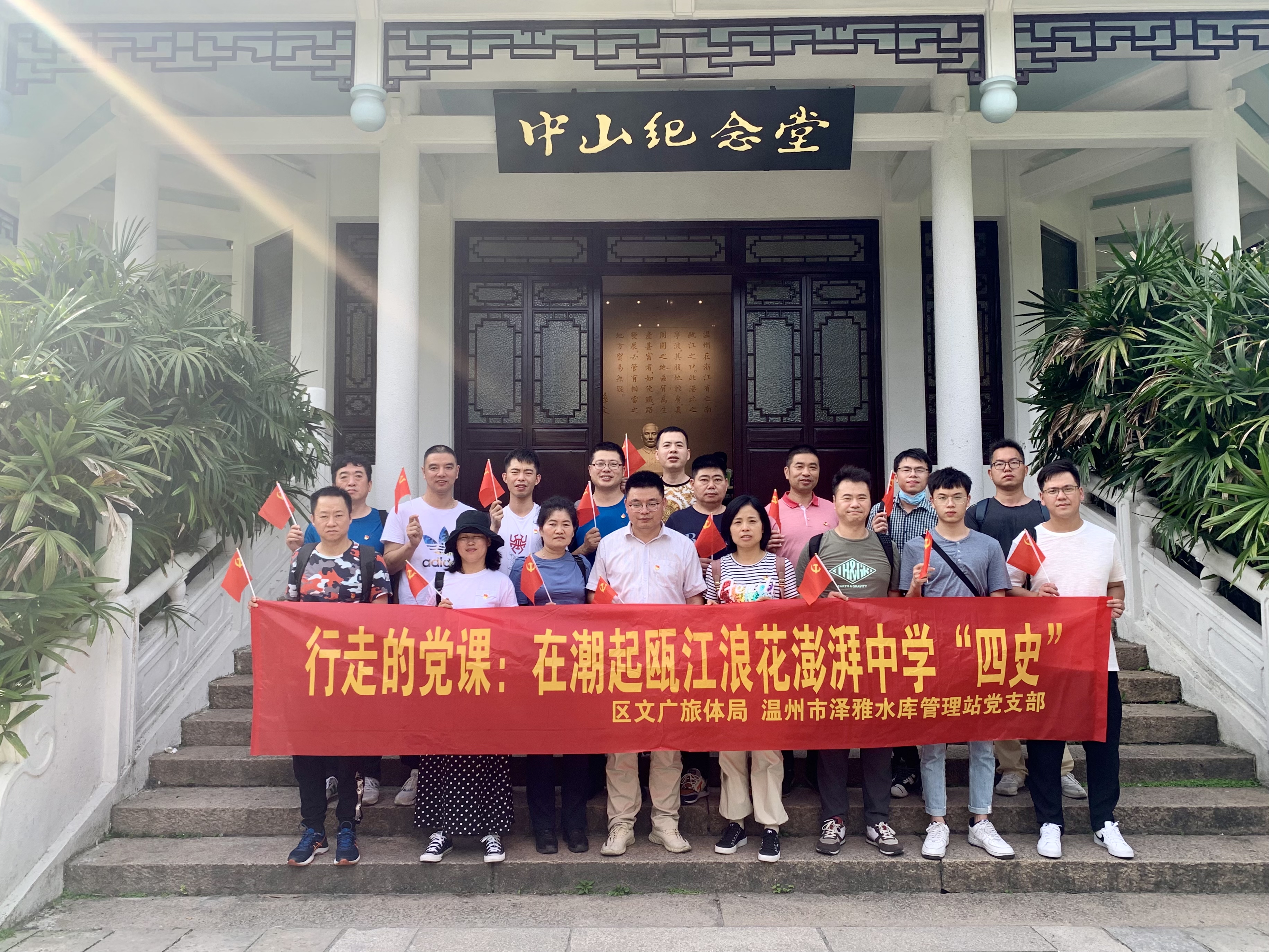 在温州城区革命历史纪念馆,党员们通过深入了解从1924年中共温州独立支部建立到1949年浙南全境解放这25年波澜壮阔的温州革命历史,深刻地接受了一场爱国主义和革命传统的学习和教育。随后,全体人员还参观了中山纪念堂。