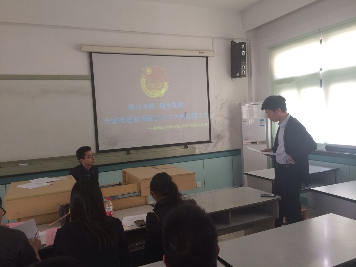 经过为期一年的争创工作,当天下午,集团下属绕西南公司、高投公司、大桥管理处、瓯江口大桥公司分别参加了青年文明号、优秀青年突击队竞标答辩。答辩会上,相关单位团支部书记从组织建设、重点工作、人才培训教育、各类活动等方面认真介绍了争创工作开展情况,并接受评委打分。会后,在集团团委微信群里,由团委刘赛书记牵头,就有关支部此次答辩的心得和体会进行总结,大家网上网下互动交流,为团委其他支部的创建提供了很好的经验。