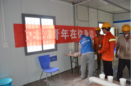 此次活动高投青年志愿者们分别走访了甬台温复线南塘至黄华段1-4标,在各标段管理人员的配合下,于施工现场多点设伏茶供应区及移动伏茶点,同时,根据工人分布情况,向每个施工组分发伏茶包。