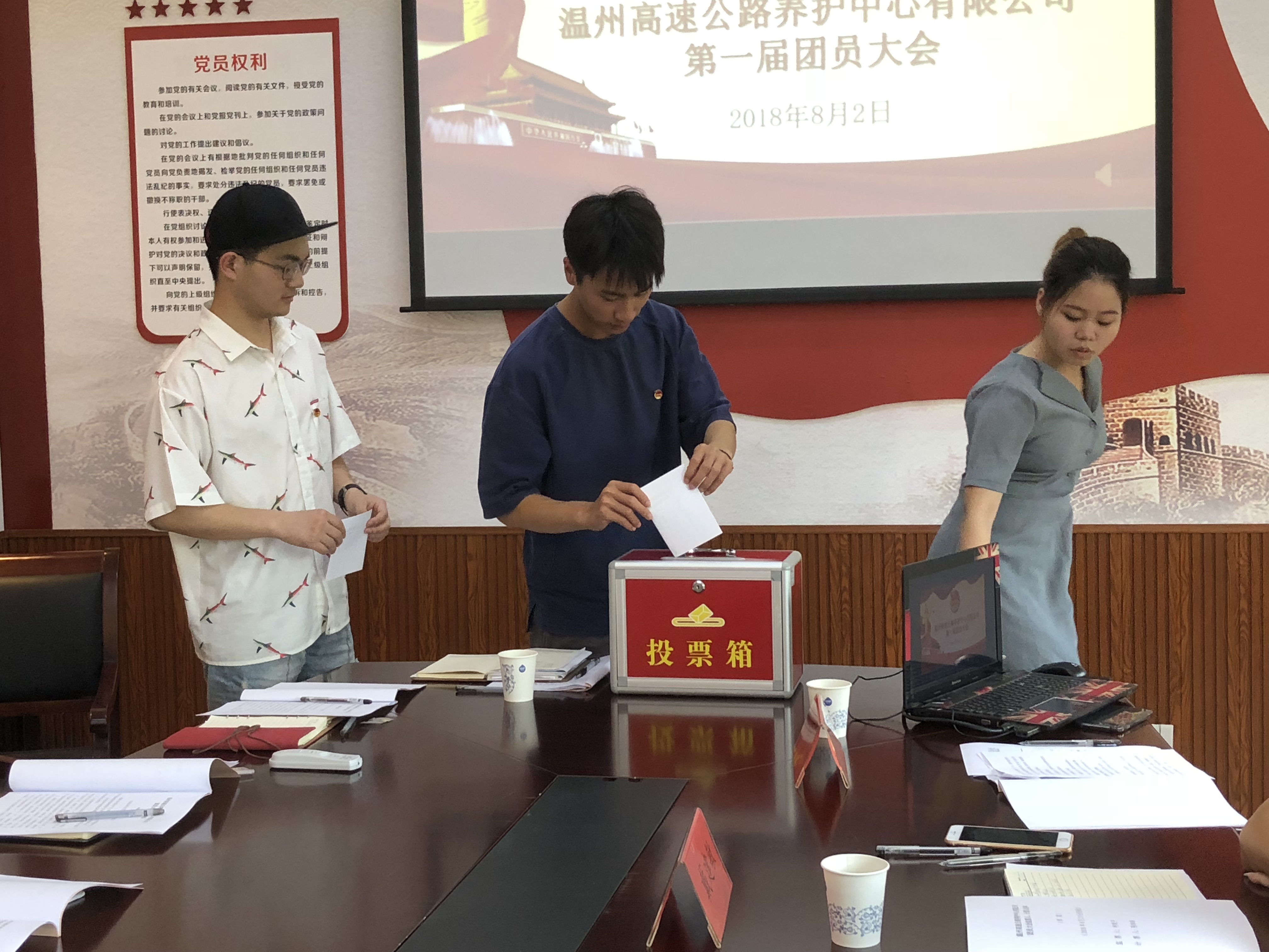 8月2日,温州高速公路养护中心有限公司团支部第一次团员大会胜利召开。养护中心胡永杰、戴建敏,集团团委王秦予出席会议,养护中心8名团员参加了会议。
