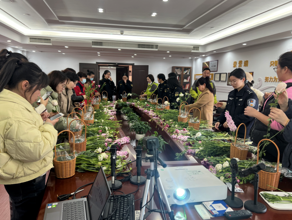 此次活动邀请国家二级花艺技师、国家花艺高级讲师、温州市妇女技能标兵高祥祥老师为共建单位女职工进行专业指导。在轻松愉快的氛围中,高老师用通俗易懂的语言为大家讲授花名、花语,插花的基本技巧,花卉的选择、颜色的搭配、花枝长短的修剪以及如何将花卉错落有致地插满花泥,并进行现场示范。