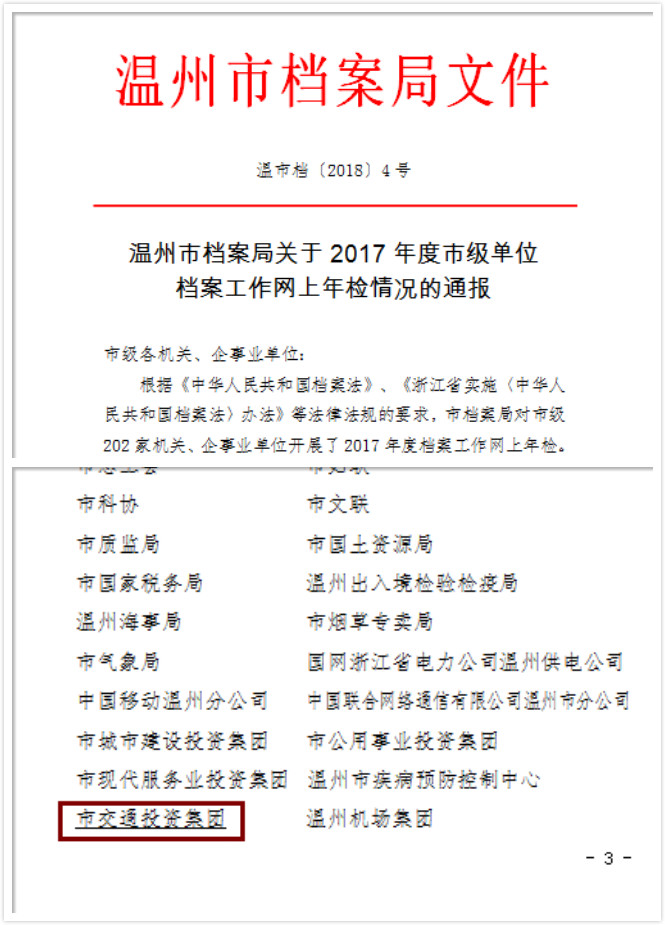 集团荣获17年度市级单位档案工作网上年检优秀单位