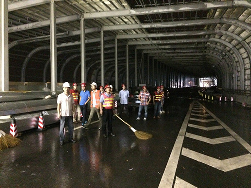 6月28—29日,市交投集团副总经理、通道公司总经理李蛟,通道公司常务副总朱清福,通道公司副总经理钱建人,通道公司副总工邓昭伟带领通道公司全体员工及各参建单位施工人员加班、加点沿线全面的检查三江互通至江滨路互通试通车路段质量、安全及桥面清理情况。