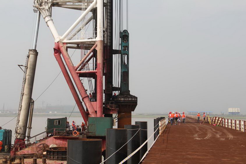 飞云江跨海特大桥水中工程正式施工
