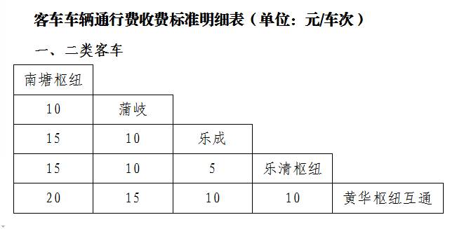 根据听证方案,市民驾小车从南塘枢纽开始计费,至蒲岐互通下需缴费10元,至乐成互通或乐清枢纽下需缴费15元,至终点黄华枢纽下需缴费20元,驾小车从北白象枢纽开始计费,至中途的七里港互通或终点黄华枢纽下高速,需缴费金额均为10元。