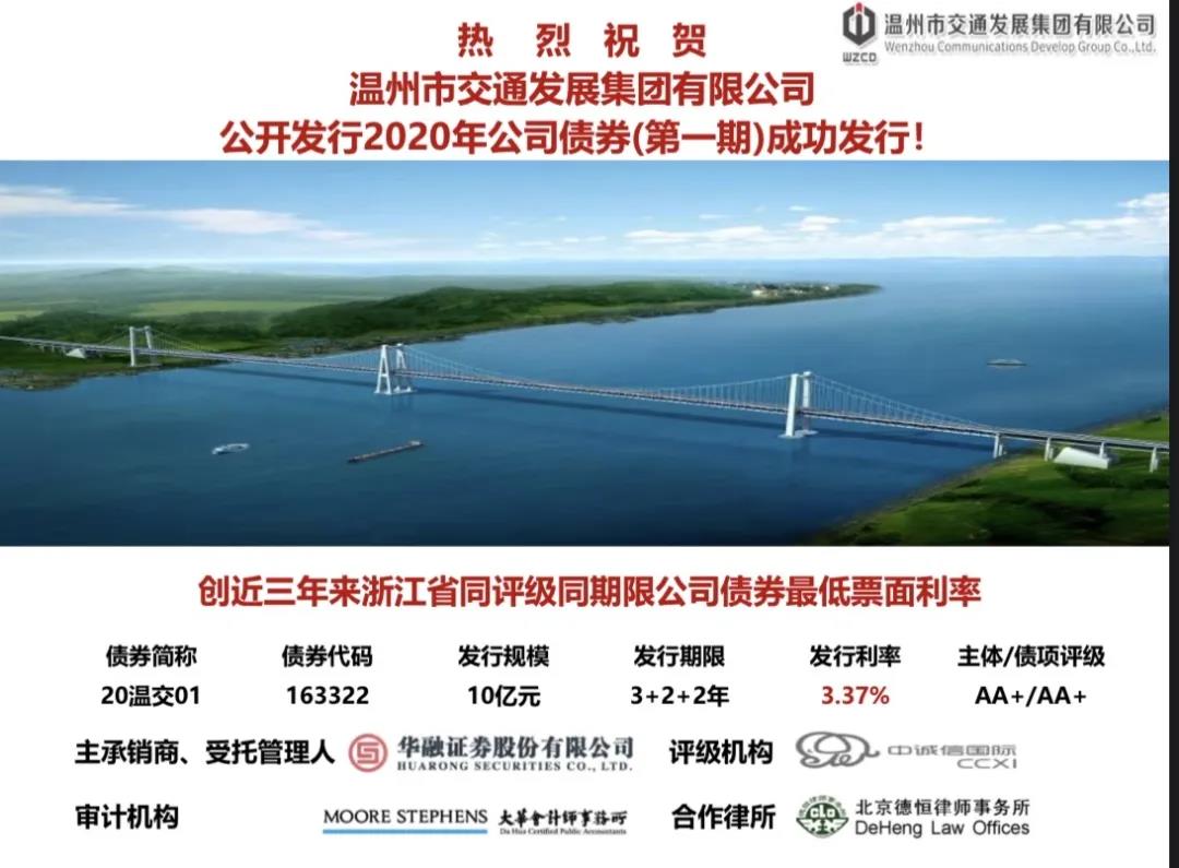 3月31日,betway西汉姆联官方网站与华融证券公司合作,在上海证券交易所成功发行10亿元公司债,本次债券期限为 7 年期(3+2+2),第 3 年末及第 5 年末附发行人调整票面利率选择权和投资者回售选择权。债券发行期间,betway西汉姆联官方网站密切跟踪并研判市场形势,积极寻找发行时机,及时制定发行策略,在各方的密切配合与大力支持下,最终票面利率为3.37%,创近三年浙江省同评级同期限(3+2或3年)最低利率,这也是集团自2019年12月5日在上海证券交易所成功发行3.87%同评级票面最低利率后又一新的突破。