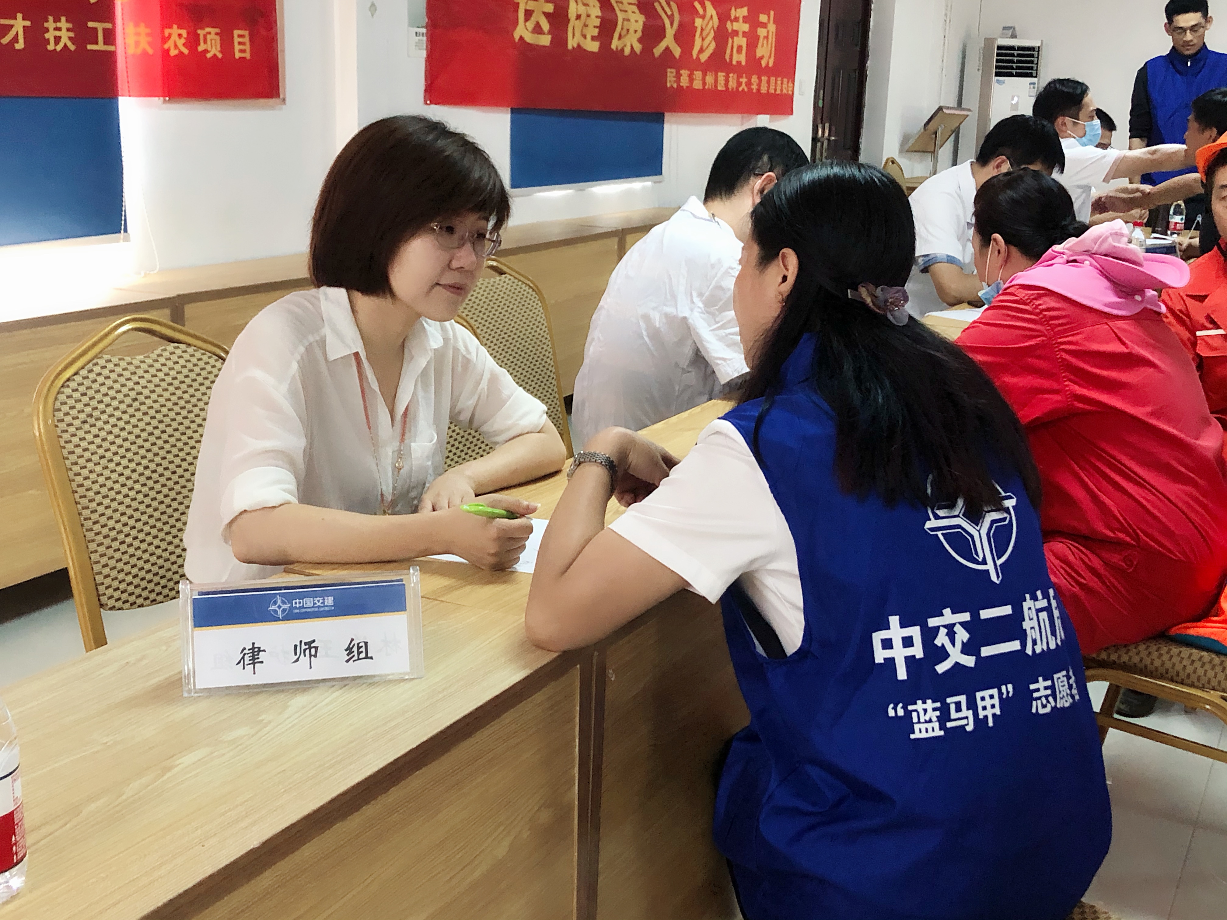 8月16日上午,第三期“服务工程一线工人,助力国家级重点桥梁建设--2020年民革党员健康义诊及法律咨询活动”在温州瓯江北口大桥如期而至。市政协副主席、民革温州委员会主委诸葛启钏带领多位从事医疗、法律专业的民革党员来到北口大桥产业工人学校,为100余位工程建设者进行现场义诊及法律咨询服务。集团总经理南品仁,瓯江口大桥公司潘济等相关人员出席活动。