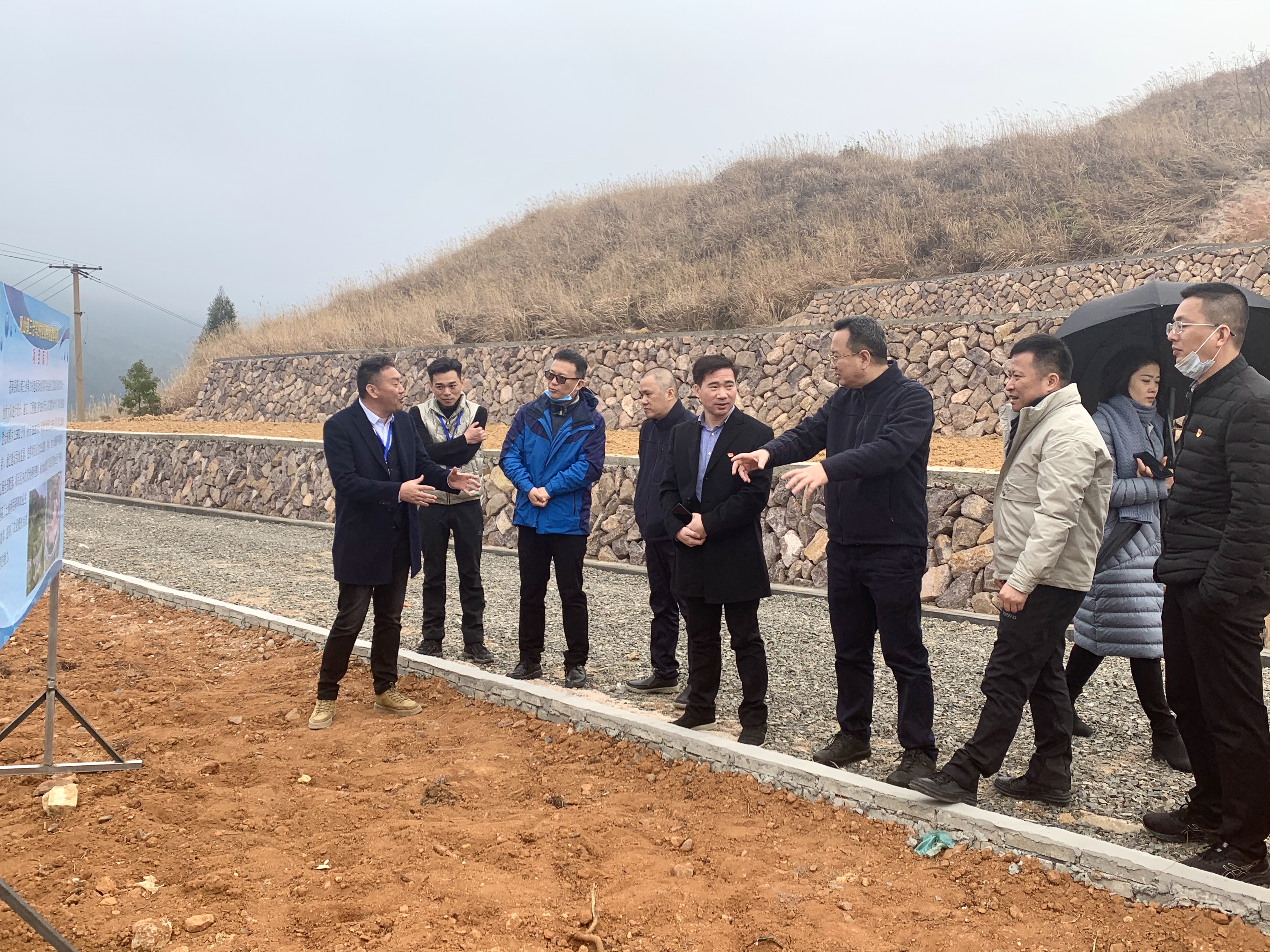 1月20日下午,集团董事长朱三平率队调研经营公司苍南县土地整治项目,并亲切慰问一线干部职工。党委副书记周列茅,副总经理、总工程师郑锋利,集团人资部左坚、办公室徐丹玲,经营公司陈金社、陈军凯及苍南管理处相关人员陪同。