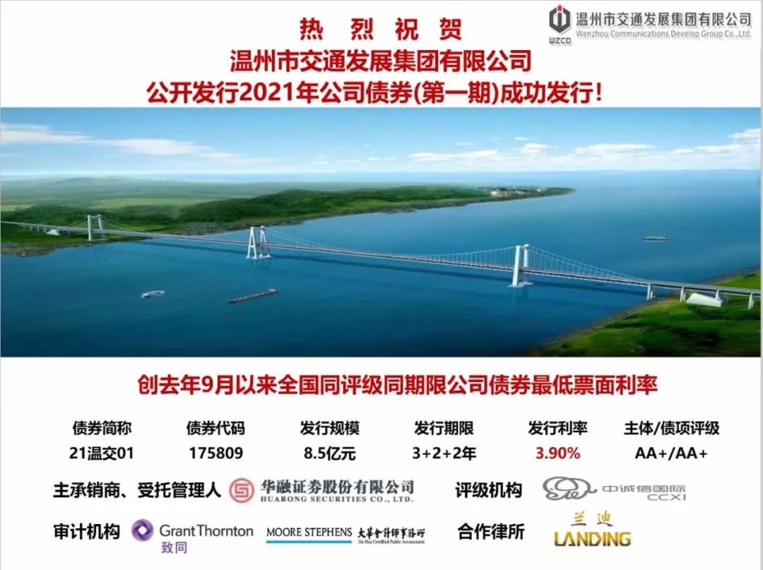 3月9日,集团与华融证券公司合作,在上海证券交易所成功发行8.5亿元公司债,本次债券期限为 3+2+2年,发行利率为3.9%,较同期贷款市场报价利率(LPR)低75个基点,创去年9月份以来全国同评级同期限公司债券最低票面利率。