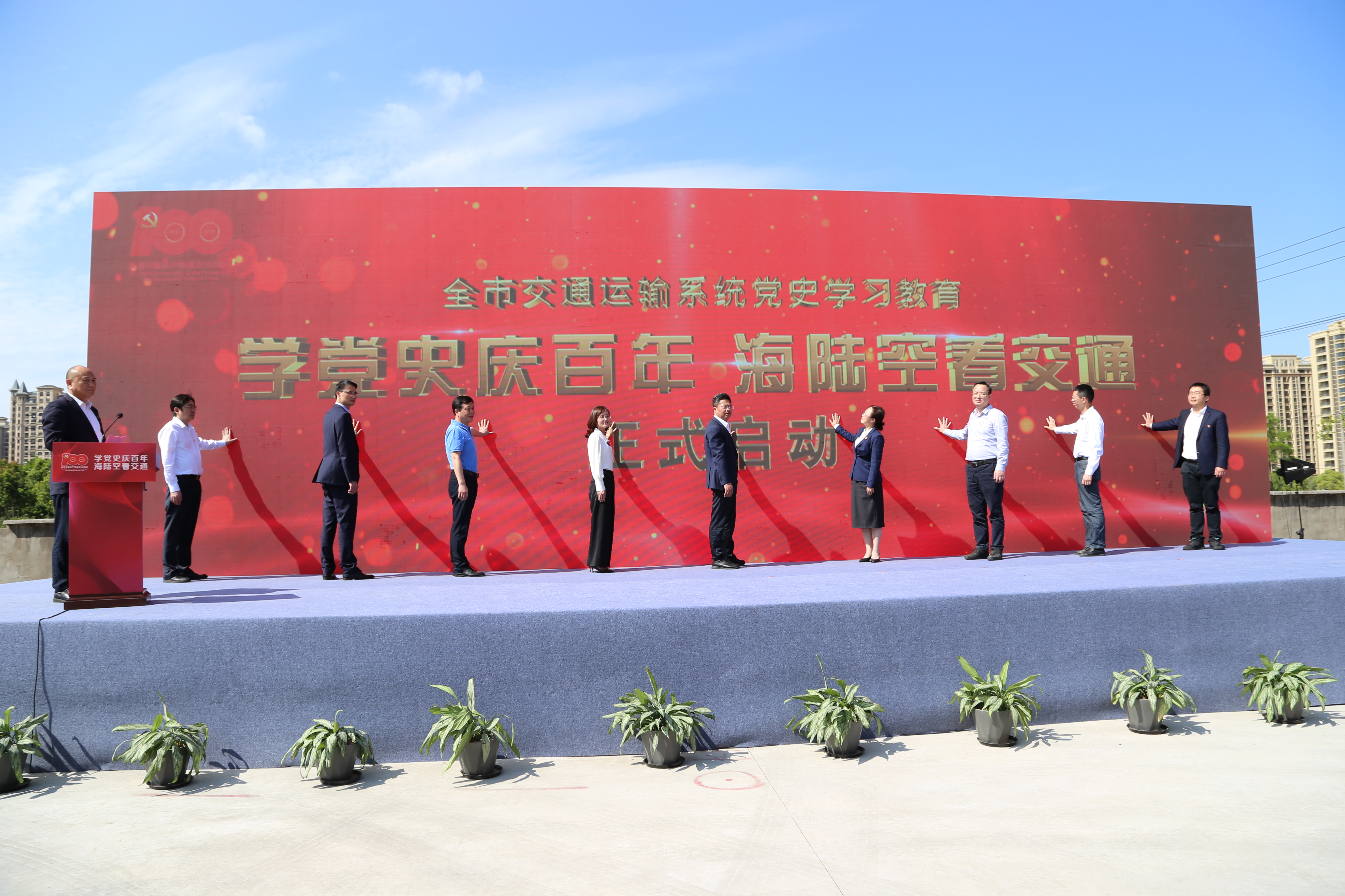 4月26日,全市交通运输系统党史学习教育“学党史庆百年,海陆空看交通”活动启动仪式在集团金丽温高速公路东延线工程产学基地举行。市交通运输局党委书记、局长项伟胜,市委宣传部副部长叶艳,温州日报报业集团党委委员、副社长王丹容,集团党委副书记周列茅等领导出席此次会议。